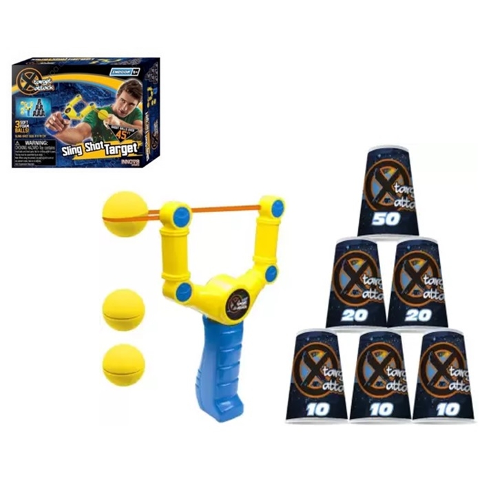 Tiro al blanco SlingShot, Perfecto set para mejorar tu puntería y poner desafíos de tiro. Este set es adecuado para entretenimiento al aire libre para jóvenes amigos que asegura horas de diversión y entretenimiento. Este juego no requiere pilas.