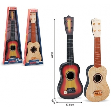 Esta guitarra de juguete es ideal para que los niños adopten la postura correcta y aprendan a tocar diferentes notas. Ayuda a los niños a divertirse y estimular y desarrollar su talento. Imagen referencial muestra los dos modelos asociados al codigo ud recibira solo una guitarra segun disponibilidad. Medidas 55x17 cms. No requiere pilas.
