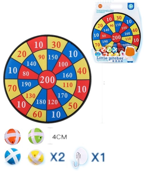 Juego clásico con 4 bolas. Las bolas de velcro de alta calidad y segura, garantiza que la bola se pueda sujetar 100% firmemente a la tabla. No tienes que preocuparte de que los niños pierden la pelota.Medidasdiám 36x4 cms.No requiere pilas.