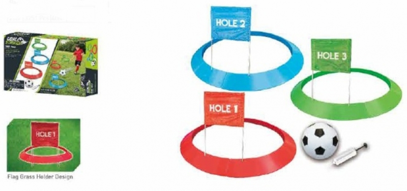 Set FutGolf, combina las habilidades de fútbol y las del Golf con este increíble y divertido juego. Puedes crear tu propio campo de golf en el patio de tu casa y aplicar tus mejores movimientos de fútbol y así pasar una tarde de diversión mientras practicas tu puntería y pulso. Medidas: 39x26 cm. Este juego no requiere pilas.