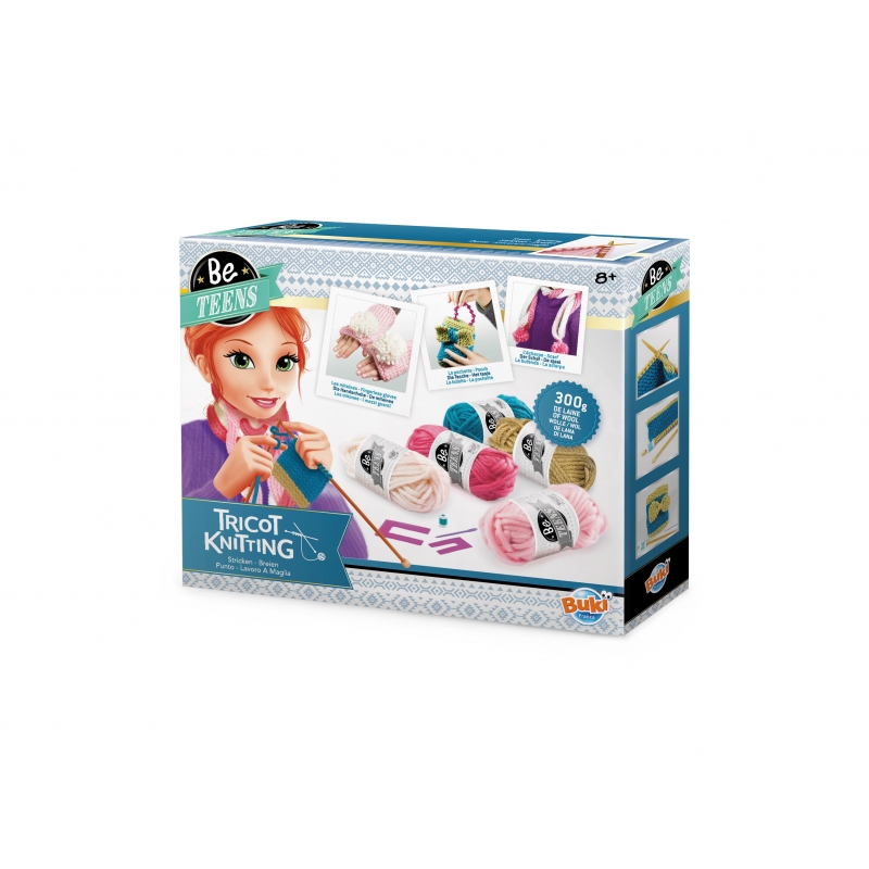 Buki Taller De Tejidos, ¡Aprende a tejer una bufanda, una bolsita y unos mitones!. Aprendizaje en 3 etapas: tejer con los dedos, tejer con agujas cambiando de color y tejer el punto jersey. Medidas: 30x6x24 cm. Este regalo no requiere pilas.