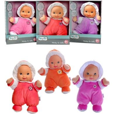 Baby First Minky so soft, Esta hermosa y suave muñeca es ideal para acompañar a tus pequeños hijos. La Baby Soft de Baby’s es una muñeca confeccionada con un cuerpo Air Pillow lo que la hace increíblemente suave y ligera. Los niños pueden cambiar la firmeza de su cuerpo aumentando o disminuyendo la cantidad de aire de acuerdo con su gusto, además, viene vestida con un bello traje. Este juguete está pensado para incentivar el desarrollo de tus pequeños, ayudándoles a desarrollar sus habilidades cognitivas, sensoriales, que promueve en ellos la imaginación y la creatividad. Imagen Referencial usted al seleccionar este código recibirá una versión según disponibilidad. Medidas: 30 cm. Este regalo no requiere pilas.