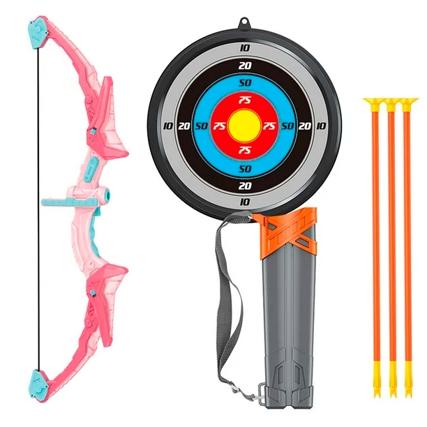 Set de Arquería color rosa, está diseñado con materiales de calidad para que su hijo pueda disfrutar de juegos regulares sin el temor de romper o dañar. Puede resistir una misión completa de juego duro y divertido. Este arco y flecha con luz LED requiere la instalación de dos baterías. Después de instalar las baterías, presione y mantenga presionado el botón de luz; el arco y flecha emitirán luces parpadeantes, convirtiéndose en juguetes muy hermosos y geniales.El conjunto de Arco y Flecha siempre sorprende a los niños. Medidas: 44x10x24 cm. Este juguete incluye pilas.