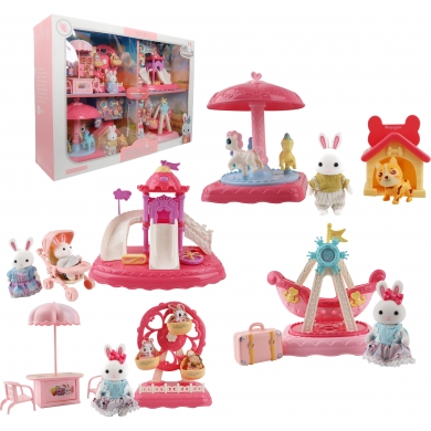 La Familia Conejo en el Parque, La luz de las guirnaldas, la alegre música de carnaval, el rugido de las atracciones, las risas y, por supuesto, ¡la deliciosa comida callejera! ¡Vamos a un parque de atracciones el fin de semana con una familia de lindos conejos! Es simplemente imposible no quedar impresionado por el nivel de detalle y la combinación de colores brillantes de estos sets, ya que presentan versiones en miniatura de objetos cotidianos que se reducen al tamaño de un juguete, y todos los modelos de viaje son funcionales. El set también incluye figuras de lindos conejos blancos, que son suaves y agradables al tacto, porque el revestimiento flocado simula el pelaje de un conejo real, y también están vestidos con atuendos brillantes que añaden un encanto único a los animales. Jugando con este set, tu hijo desarrollará su imaginación y creatividad, entrenará su motricidad fina y la coordinación general de movimientos. Medidas: 41x57 cm. Este regalo no requiere pilas.