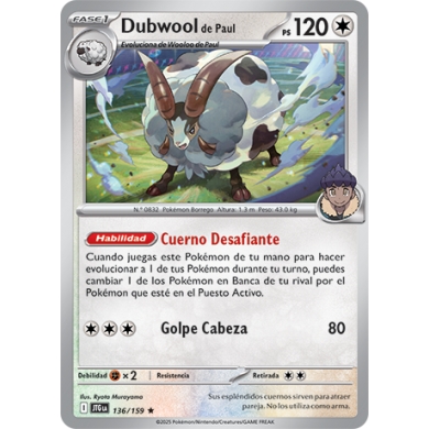 POKEMON JOURNEY TOGETHER CARTA HOPA?S DUBWOOL REVERSE ha sido agregado al carro de compras.