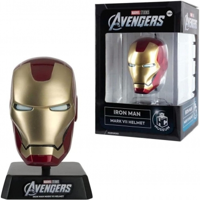 Réplica en miniatura del casco de la armadura Mark VII de Iron Man en Los Vengadores, del universo Marvel.