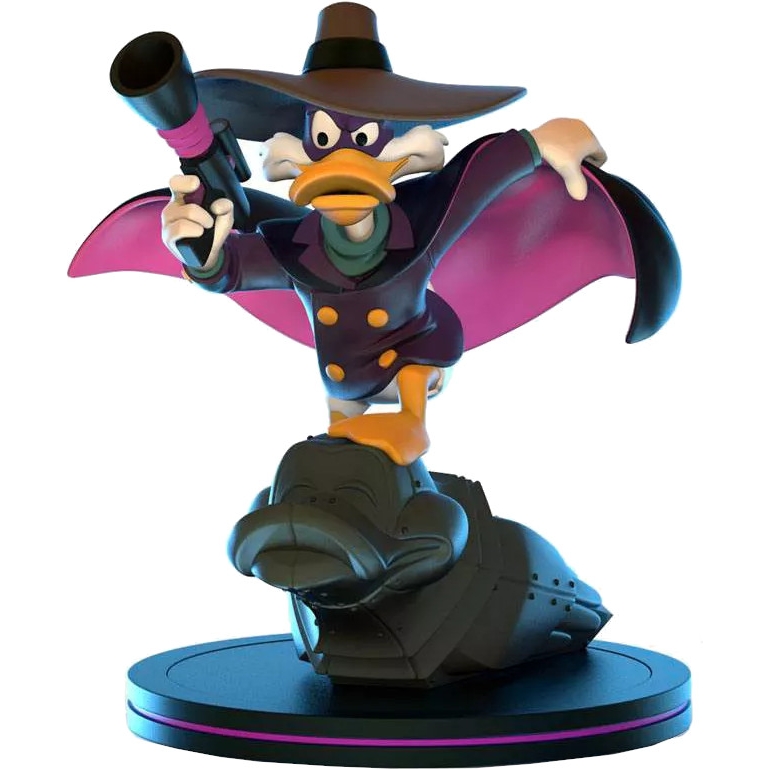 El superhéroe de Disney que nació durante la época dorada del cómic no es otro que Darkwing Duck, alias Drake Mallard, bajo su verdadera identidad, y aquí se presenta como figura para la colección Q-Fig.