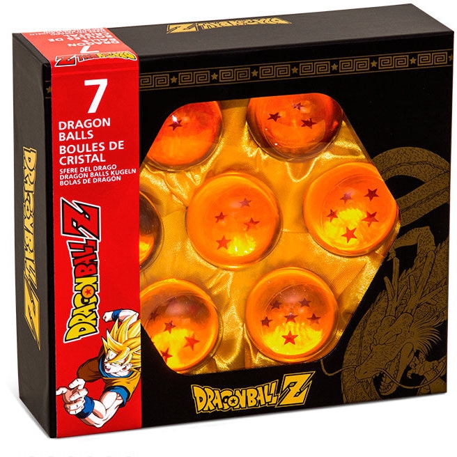 Las Esferas del Dragón, los objetos que dan nombre a la serie Dragon Ball, poseen una magia extraordinaria. Al reunir las 7 esferas, se puede invocar al Dragón Eterno, quien concederá un deseo. Este set de colección incluye las 7 Esferas del Dragón en una caja de presentación forrada en satén. Cada esfera acrílica luce los símbolos estelares de la serie y mide aproximadamente 5 cm de diámetro. ¡Este set con licencia oficial es el complemento perfecto para la colección de cualquier fan de Dragon Ball Z!