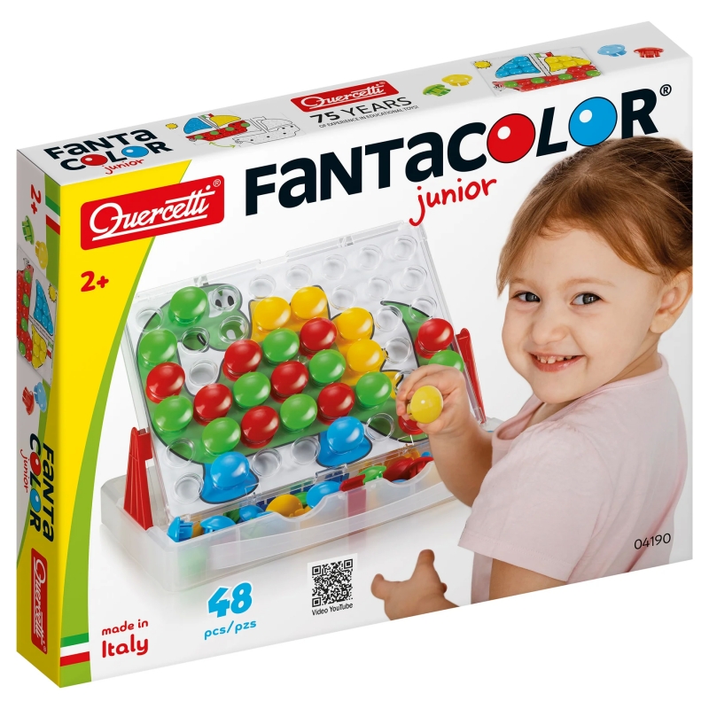 ¡Creatividad y aprendizaje desde los 2 años! Los/as más pequeños/as pueden crear sus primeros mosaicos coloridos insertando los 48 pines grandes e irrompibles en la pizarra transparente. Incluye 8 tarjetas con modelos que se colocan fácilmente debajo para guiar el juego. Todo se guarda cómodamente en el maletín con asa, que además se convierte en caballete para jugar y exponer las creaciones. Un juguete sin piezas pequeñas, que estimula la coordinación, la motricidad fina y la creatividad.