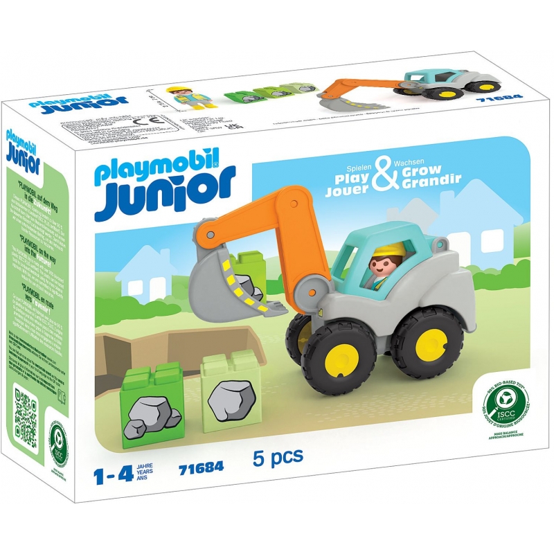 "El trabajador de la construcción y su excavadora están listos para un emocionante día en la obra. ¿Estás listo para participar? Con el brazo móvil de la pala se pueden transportar y apilar los bloques de construcción. Pero cuidado, ¡requiere habilidad y coordinación! No es tan fácil como parece, ¿verdad? ¿Quién puede construir una torre? ¿Hasta qué altura puede apilar los bloques el trabajador de la construcción con su excavadora? ¿Quién puede colocar los bloques en el orden correcto?"