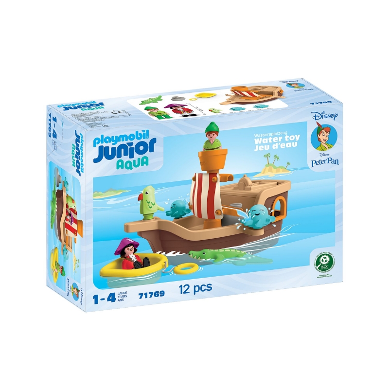 Peter Pan, de Disney, convierte la hora del baño en una emocionante aventura. El barco pirata tiene muchas atracciones acuáticas que descubrir.