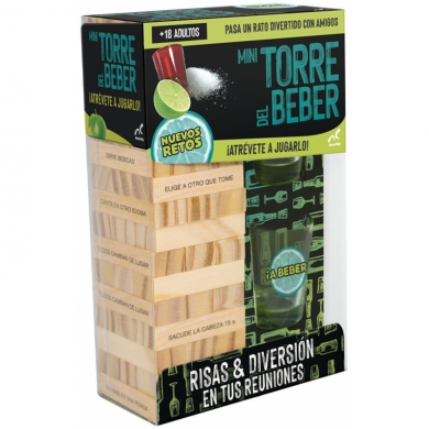 Emocionante y divertida mini torre con 48 bloques de madera y desafiantes retos para vivir en pareja o con amigos. Un juego para mayores de 18 años.