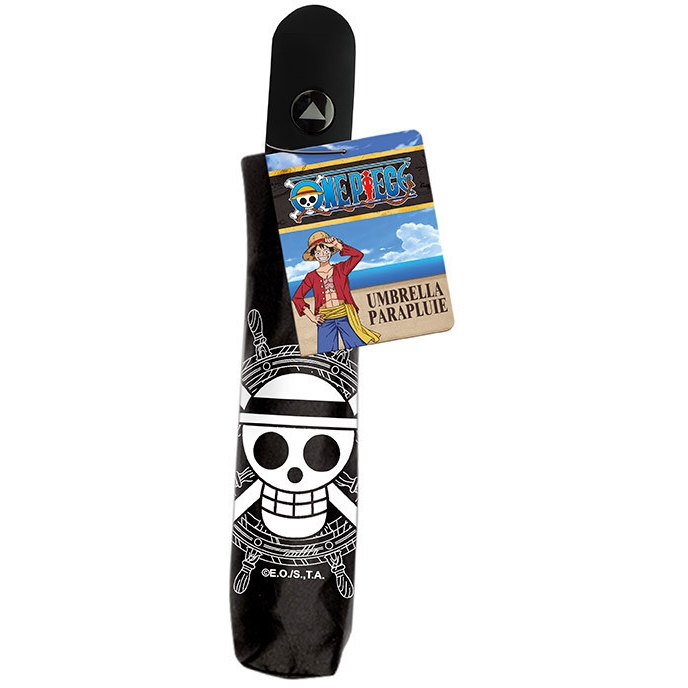 Para tus largas aventuras en cualquier clima, incluso en medio de una tormenta en la Grand Line, protégete de los elementos con este paraguas de One Piece de la tripulación de Sombrero de Paja de ABYstyle. Luce los símbolos de tus piratas favoritos: Luffy, Zoro, Nami, Usopp, Sanji, Chopper, Robin, Franky, Brook y Jinbe. ¡Un accesorio imprescindible para todos los fans que sueñan con seguir sus pasos en One Piece!