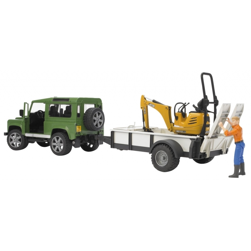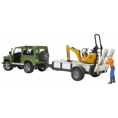 BRUDER 02593 LAND ROVER DEFENDER ONE AXLE TRAILER, JCB MICRO EXCAVATOR + WORKER ha sido agregado al carro de compras.