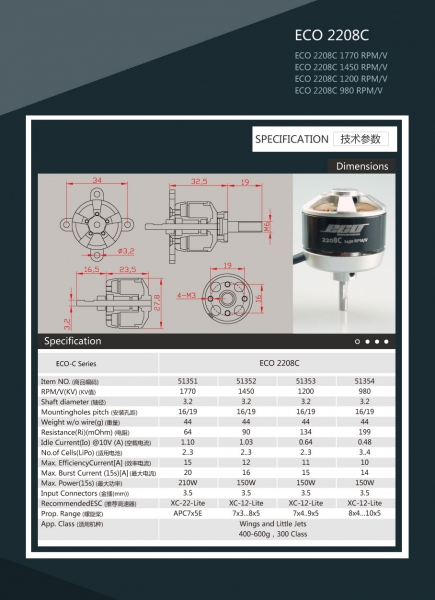 DUALSKY MOTOR BRUSHLESS ECO 2208C 1200KV 150W
