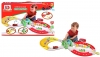 Pista de carreras de auto Ferrari motorizado con luz y sonidos. La pista tiene forma de 8 durante el trayecto pasará por un arco con la bandera a cuadros que indica el inicio de la carrera y comienza toda la emoción y diversión. Además hay piezas de juego de colores y formas variadas para estimular la atención del niño (a) .