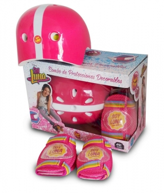 Set de protección Soy Luna , incluye casco y rodilleras . La marca favorita para chicas modernas y deportistas ... Medidas 34x24 cms. Este juguete no requiere pilas