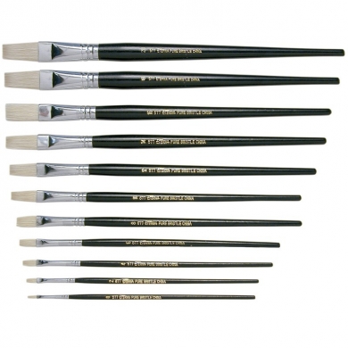 Pelo de cerda. Forma plana. Retienen mucha pintura. Mango largo.