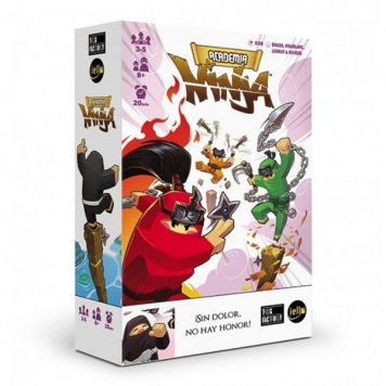 Academia ninja es un juego de habilidad y destreza preparado para 3 a 5 jugadores a partir de 8 años de edad. Disputa delirantes pruebas de destreza usando tan solo los componentes de la caja de juego.