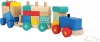 Con la ayuda de los enganches de madera, los dos vagones y el tren se acoplan fácilmente. El tren puede ser fácilmente arrastrado por el cordel.