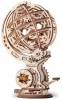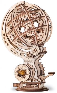 El modelo consta de esferas giratorias internas y externas. El motor de cuerda elástica dentro del modelo hace que la esfera se mueva alrededor del eje en direcciones opuestas. Montaje sin pegamento. 205 piezas. Tamaño modelos ensamblado 161 x 132 x 251 mm