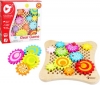Juguete educativo para potenciar a nuestro pequeños/as ingenieros/as. Los engranajes de madera se pueden reorganizar para que se muevan todos juntos o independientes, las posibilidades son infinitas.