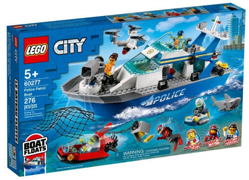 El Barco Patrulla de Policía LEGO® City es un juguete que flota repleto de accesorios impresionantes, como una detallada estación de control y un dron de vigilancia. Los niños pueden accionar una palanca para soltar al buceador y el propulsor subacuático, y disparar el cañón lanzarredes para capturar el minisubmarino de los ladrones. Con 5 minifiguras a bordo, entre ellas Gracie Goodhart, Frankie Lupelli y Hacksaw Hank, de la serie para televisión LEGO City: Aventuras en la Ciudad, no faltará inspiración para interpretar creativas historias.