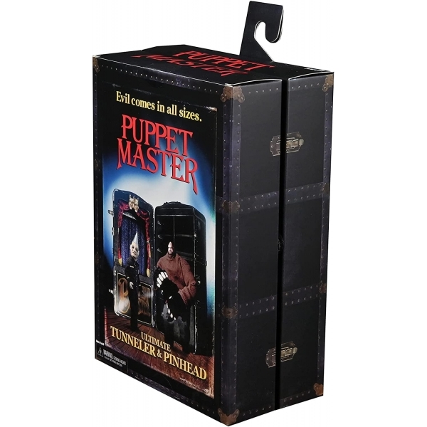 Neca presenta las figuras de Pinhead y Tunneler, basadas en la serie de culto "Puppet Master". Este pack de 2 figuras de unos 11 cm representa el aspecto clásico de cada títere, con accesorios relacionados con las apariciones de los personajes en varias películas de la franquicia. Pinhead incluye dos manos intercambiables, un atizador de fuego, un frasco de líquido rejuvenecedor, una llave inglesa y ganchos. Tunneler está armado con una pistola de engrase y un pico, junto con cabezas y manos intercambiables y una tapa de taladro con sangre alternativa. Vienen en una caja con ventana que replica el estuche de marionetas de Andre Toulon.