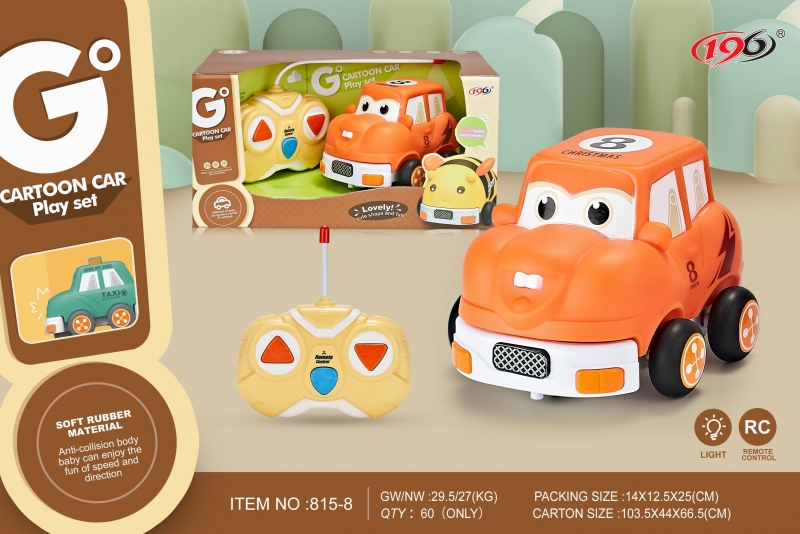 Coche de juguete con control remoto para niños, carcasa de vinilo con luz y cargador de música, con forma de dibujos animados, el cuerpo y la carcasa se pueden desmontar libremente. Una tecla hacia adelante una tecla hacia atrás girar. Medidas packaging 14x12.5x25 cms. Requiere 5 pilas AA, ya incluidas.