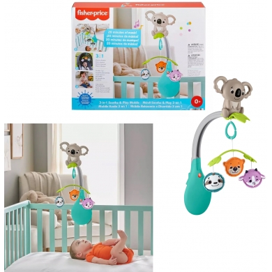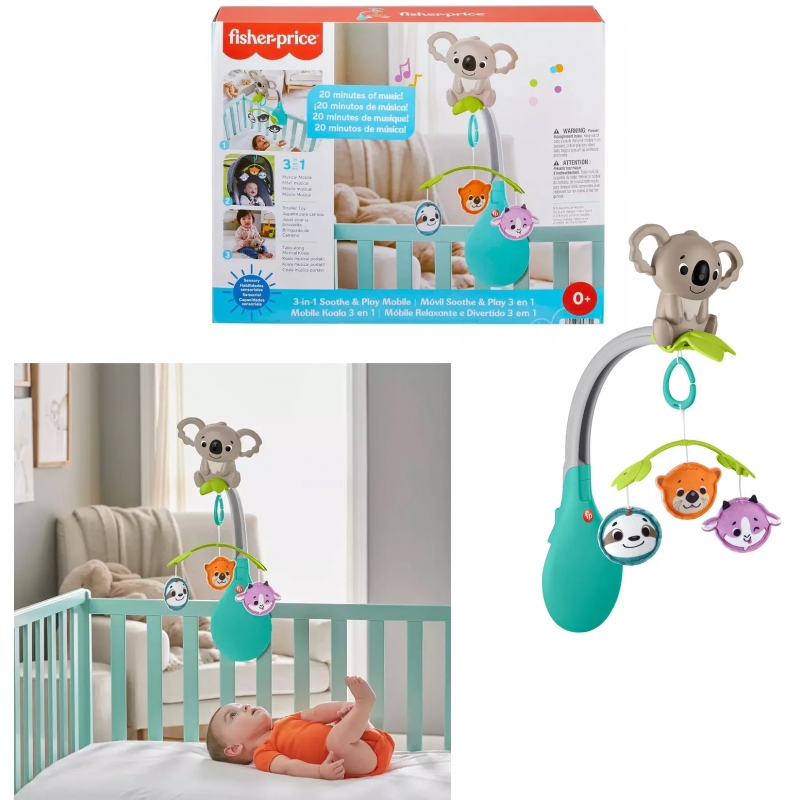 Fisher price movil dulces sentidos, ¡El móvil 3 en 1 Soothe & Play de Fisher-Price® es todo en uno para calmarte y jugar! El móvil cuenta con un simpático koala y otros 3 juguetes colgantes de caras simpáticas con dos caras: coloridas y de alto contraste, para ayudar al desarrollo sensorial más temprano de tu hijo(a) . Con 3 formas de calmarlo, puedes usarlo como móvil de cuna, quitar el móvil y sujetarlo a la cubierta de una carriola o llevar el koala de juguete donde vayas. ¡Además, el móvil reproduce una música relajante mientras está conectado al móvil y cambia automáticamente a una música juguetona cuando se retira para divertirse! Móvil 3 en 1 con temática koala para usar en cunas, carriolas o como juguete para llevar Utilízalo como móvil para la cuna o fíjalo a la cubierta de la carriola El simpático koala es desmontable para jugar con él Incluye 3 juguetes de animalitos colgantes que tienen dos caras: una colorida y otra de alto contraste, para ayudar a fomentar el seguimiento con los ojos. Medidas: 35x22x7cm. Este juguete incluye pilas.