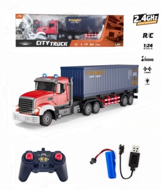 GIGATOYS QH300-1 2.4GHZ 1:24 SCALE 6CH R C CONTAINER TRUCK WITH LIGHT AND MUSIC ( FORWARD BACKWARD,TURN LEFT RIGHT, LIGHT, 3 MUSIC , OPEN DOOR, AUTO DEMO, DETACHABLE )