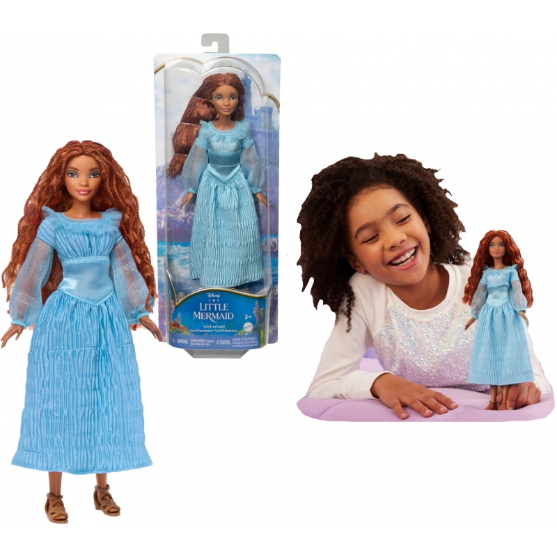 Mattel Disney La Sirenita Ariel Humana, Inspirada en el personaje de Ariel con su larga melena con rastas, esta muñeca articulada de la princesa en su forma humana luce su conjunto característico y tiene el pelo largo y rizado. Además, lo lleva trenzado con algunos mechones sueltos que puedes peinar para divertirte sin parar. A los fans les encantará recrear sus momentos favoritos de la película o imaginar nuevas aventuras con Ariel bajo el agua. Medidas:5x13x32 cm. Este juguete no requiere pilas.