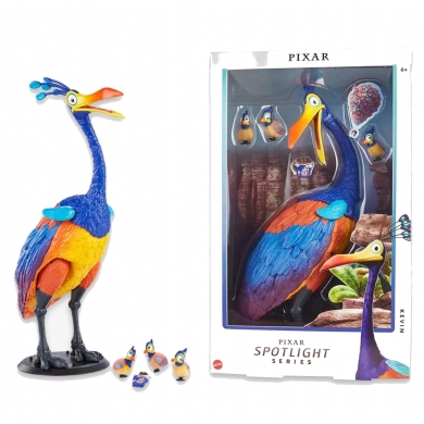 ¡El primero de una nueva serie de coleccionistas, el escurridizo pájaro sudamericano, Kevin y sus 3 bebés hará que los fanáticos de Disney y Pixar y los coleccionistas de todas las edades se iluminen de emoción! Yendo más allá de lo esperado, la figura coleccionable ha sido diseñada con una precisión increíble utilizando los conocimientos de uno de los artistas de personajes, Albert Lozano. Los tres pollitos de Kevin son una versión pequeña y más borrosa de su pájaro mamá. Con las articulaciones móviles y el diseño auténtico de Kevin, e incluso los tres bebés con expresiones individuales y una barra de chocolate que le robaron a Russell, los fanáticos encontrarán que sus sueños de más alto vuelo se hacen realidad.