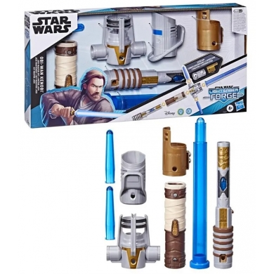 ¡Los niños y niñas a partir de 4 años podrán imaginar sus propios duelos con este sable de luz de juguete del Set Maestro Jedi Obi-Wan Kenobi, de la línea Lightsaber Forge, de Star Wars! Este sable de luz electrónico cuenta con una hoja luminosa extensible inspirada en el universo de Star Wars, 2 hojas pequeñas, una tapa extra, un guardamano extra y efectos de sonido electrónicos.