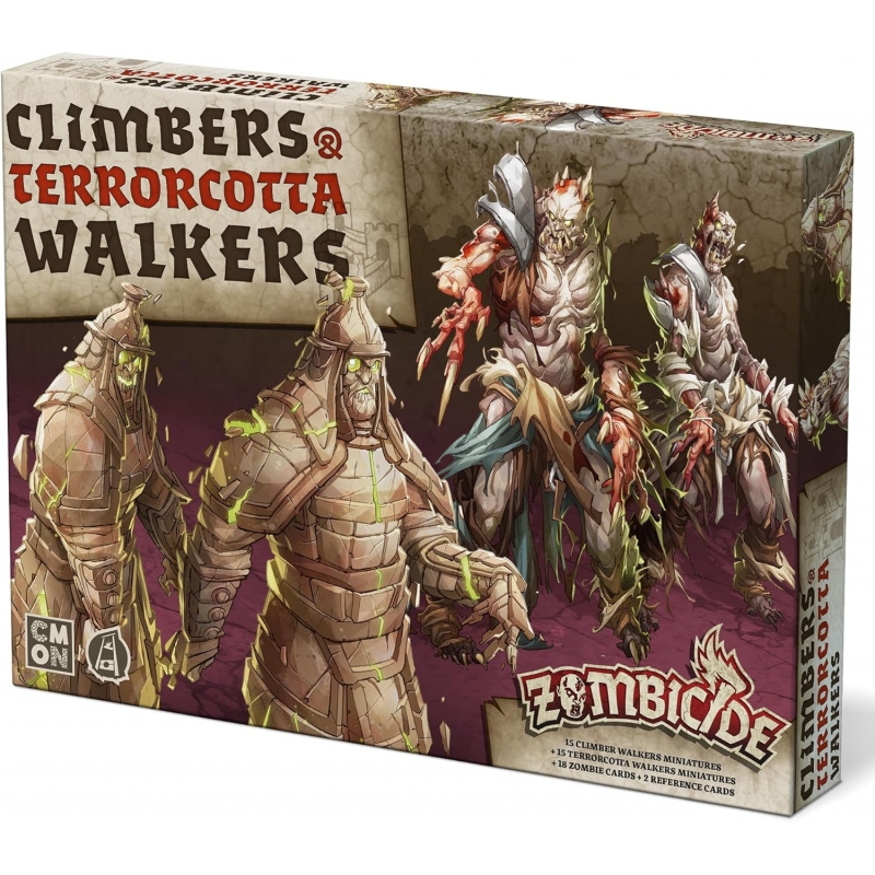 Justo cuando todo parecía calmarse, se puso peor. Primero, la plaga zombie empezó a contagias hasta las estatuas de la ciudad. Luego, las murallas, que parecían seguras, fueron invadidas por zombies que pueden escalar. El pack de Climbers & Terracota Walkers trae nuevos horrores a la mesa. Los Terracota Walkers pueden reformarse si hay otro en la zona, lo que quiere decir que hay que eliminarlos por completo para derrotarlos. Por otro lado, los Climbers, pueden trepar diferentes tipos de terreno, lo que hará que ciertas zonas seguras se vuelvan peligrosas. Contenido 30 miniaturas, 18 mini cartas, 1 reglamento