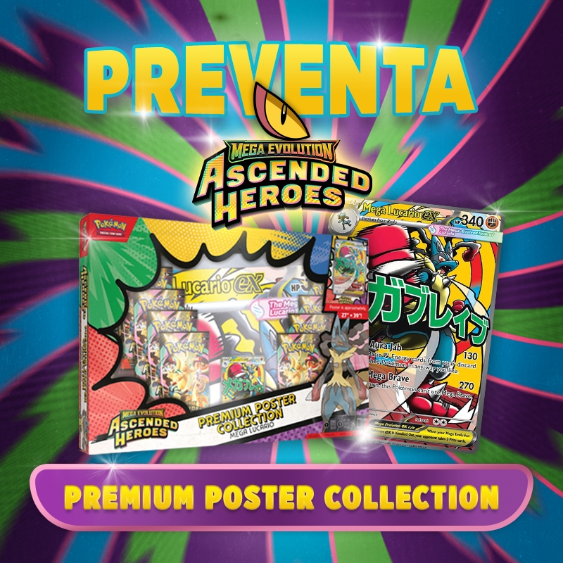 POKEMON TCG MEGA EVOLUTION ASCENDED HEROES PREMIUM POSTER COLLECTION MEGA LUCARIO EX ESPANOL PRE VENTA