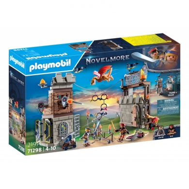 Vive la épica batalla entre los Caballeros de Novelmore y los Bandidos de Burnham. Contiene 219 piezas e incluye un torneo con cañones, trampillas y objetivos. Compite por la legendaria Espada del Guardián. Perfecto a partir de 4 años, el Torneo puede combinarse con el Gran Castillo de Novelmore PLAYMOBIL para vivir aún más aventuras.