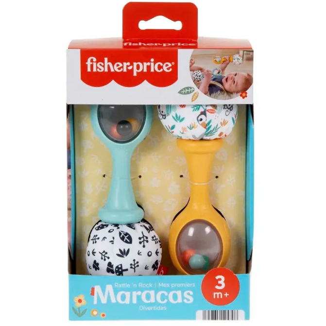 Las Maracas diversión y música de Fisher-Price tienen el tamaño perfecto para las manitas pequeñas de tu bebé, ¡que podrá moverlas y agitarlas para que empiece la fiesta! Los pompones de las maracas son de tela suave y tienen un diseño muy llamativo, además de cuentas de colores que hacen sonidos divertidos al agitarlas. ¡Tu bebé no parará de agitar y mover a su ritmo estas maracas tan divertidas! Los colores tan llamativos, las texturas y los sonidos de las maracas estimulan al bebé y fomentan el desarrollo de sus sentidos, al mismo tiempo que el movimiento de agitar y mover fortalece su motricidad gruesa.