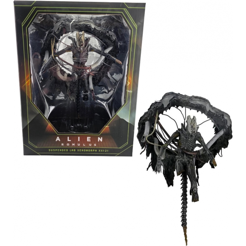 De la exitosa película de Fede Alvarez de 2024, Alien: Romulus, ¡llega el regreso del famoso Xenomorfo que lo inició todo! Tras una brutal batalla contra las fuerzas de seguridad de Weyland-Yutani, el alienígena cuelga suspendido del techo del laboratorio de la nave cuando su sangre ácida abre un agujero en el suelo... la misma sangre que dio a los científicos acceso al ADN de la máquina de matar definitiva. Esta figura de lujo de NECA cuenta con cables articulados para colgar al Xenomorfo mutilado e incluye una pieza de exhibición del techo del laboratorio quemado por el ácido, diseñada para montarla en la pared o el techo. La figura también cuenta con mandíbula articulada, mandíbula interior deslizante y cola con alambre. Empaquetada en una caja de exhibición transparente para coleccionistas, ¡sin duda será la pieza central de tu colección de Alien: Romulus!