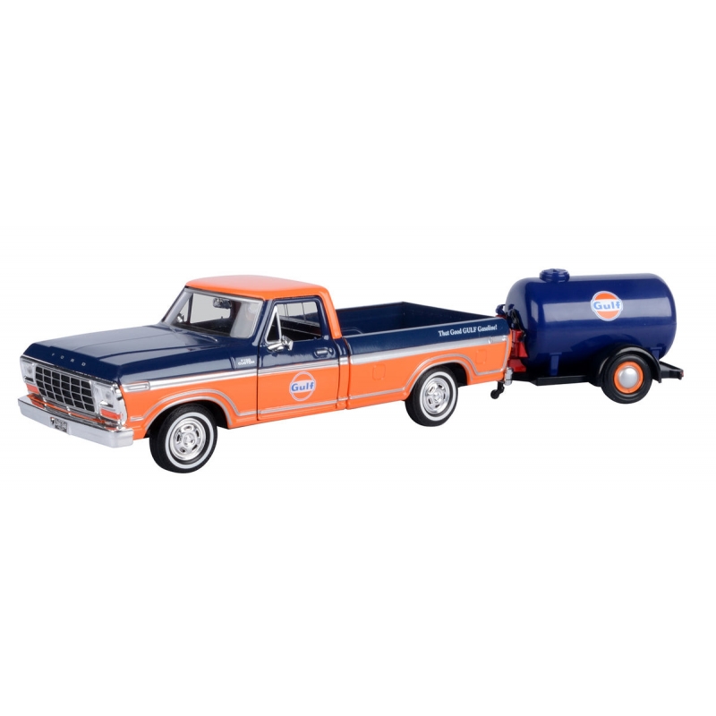 MOTORMAX 79612 1:24 1979 FORD F - 150 CUSTOM PICKUP + OIL TANKER WITH GULF LIVERY
