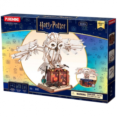 Celebra la fidelidad de la lechuza más famosa con este magnífico kit de construcción de madera con licencia oficial de Harry Potter, diseñado por Puremind. Este modelo representa a Hedwig posada sobre libros de magia, lista para entregar un mensaje. Da vida a Hedwig gracias al mecanismo articulado integrado que permite reproducir fielmente el aleteo de las alas mediante una sencilla acción manual.