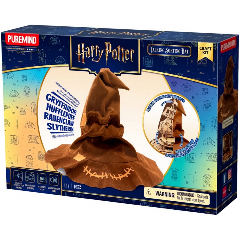 Vive la ceremonia de Selección como si estuvieras en Hogwarts con este magnífico kit de construcción con licencia oficial de Harry Potter, diseñado por Puremind. Este modelo único combina la precisión de la madera con la suavidad de un decorado de tela de alta calidad para un acabado visual y táctil realista. Da vida a tu sombrero para elegir casa: un hábil mecanismo oculto bajo el sombrero permite simular movimientos de expresión facial asombrosamente reales.