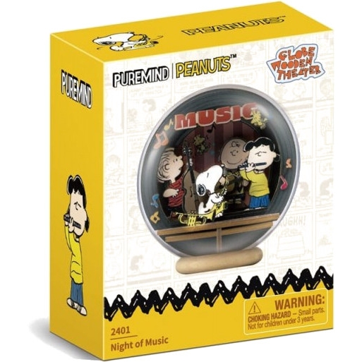 Descubre la magia de la música con la Maqueta Peanuts El Globo Wooden Theater - Noche de Música. Este kit de modelismo, fabricado por Pantasy, trae consigo la nostalgia de los icónicos personajes de Peanuts en una escena musical única. Dentro de una cúpula transparente, Snoopy y sus amigos tocan diversos instrumentos en un colorido escenario, rodeados de notas musicales flotantes.