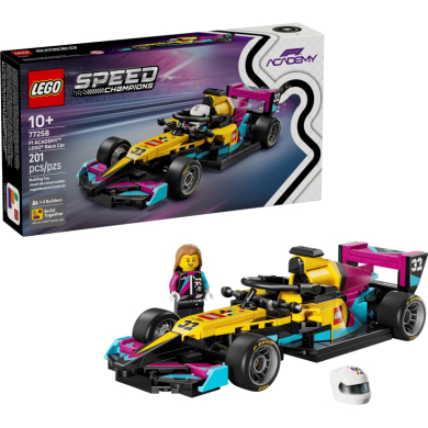 En 2026, The LEGO® Group se une a la parrilla de F1 ACADEMY™ con su propio coche de F1 ACADEMY, y ahora las niñas y los niños a partir de 10 años podrán construir su propia maqueta de exposición. El modelo LEGO® Speed Champions Coche de Carreras F1 ACADEMY LEGO® (77258) es ideal para jugar y exponer, y reproduce numerosos detalles del que participa en F1 ACADEMY, una competición de automovilismo exclusivamente femenina.
